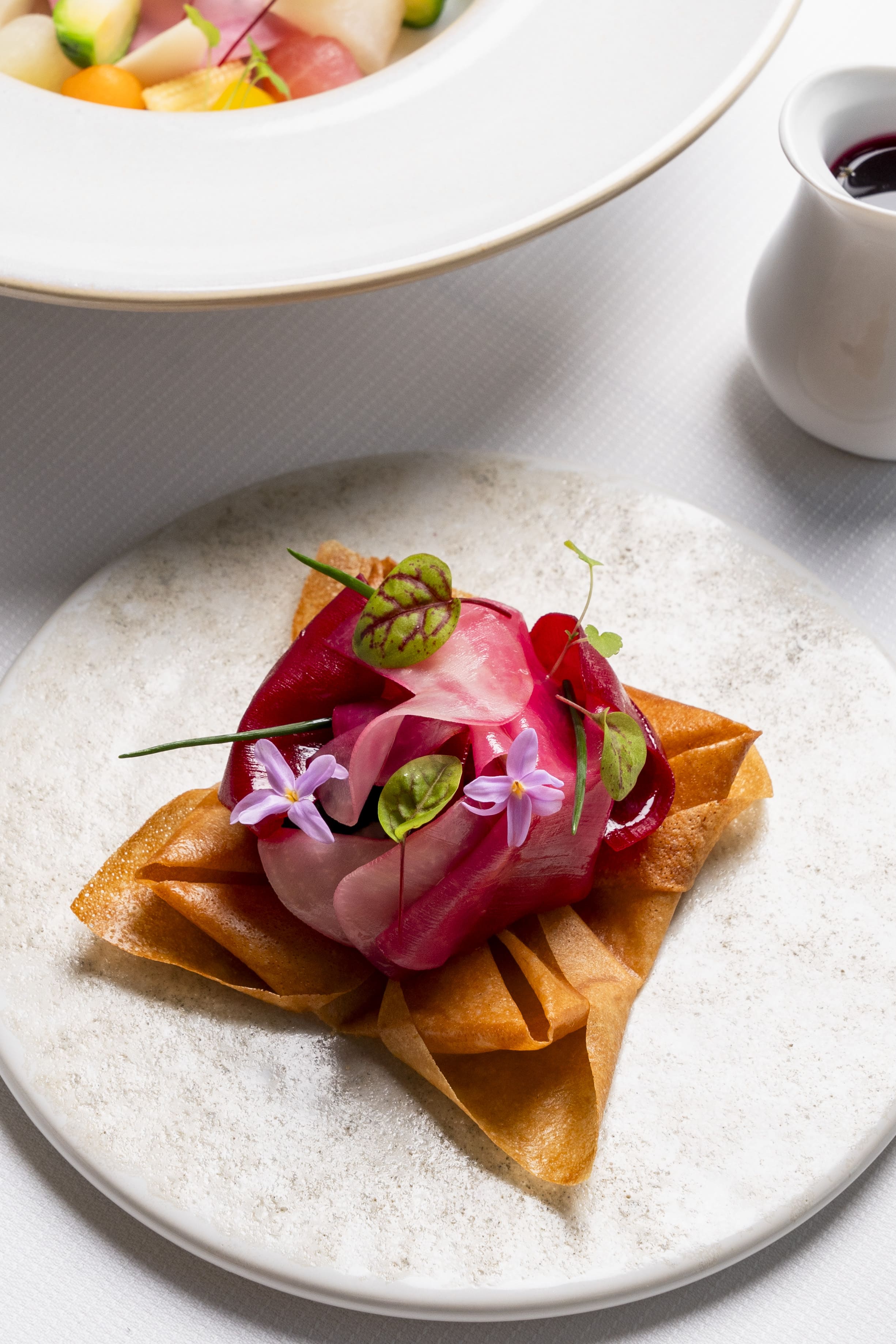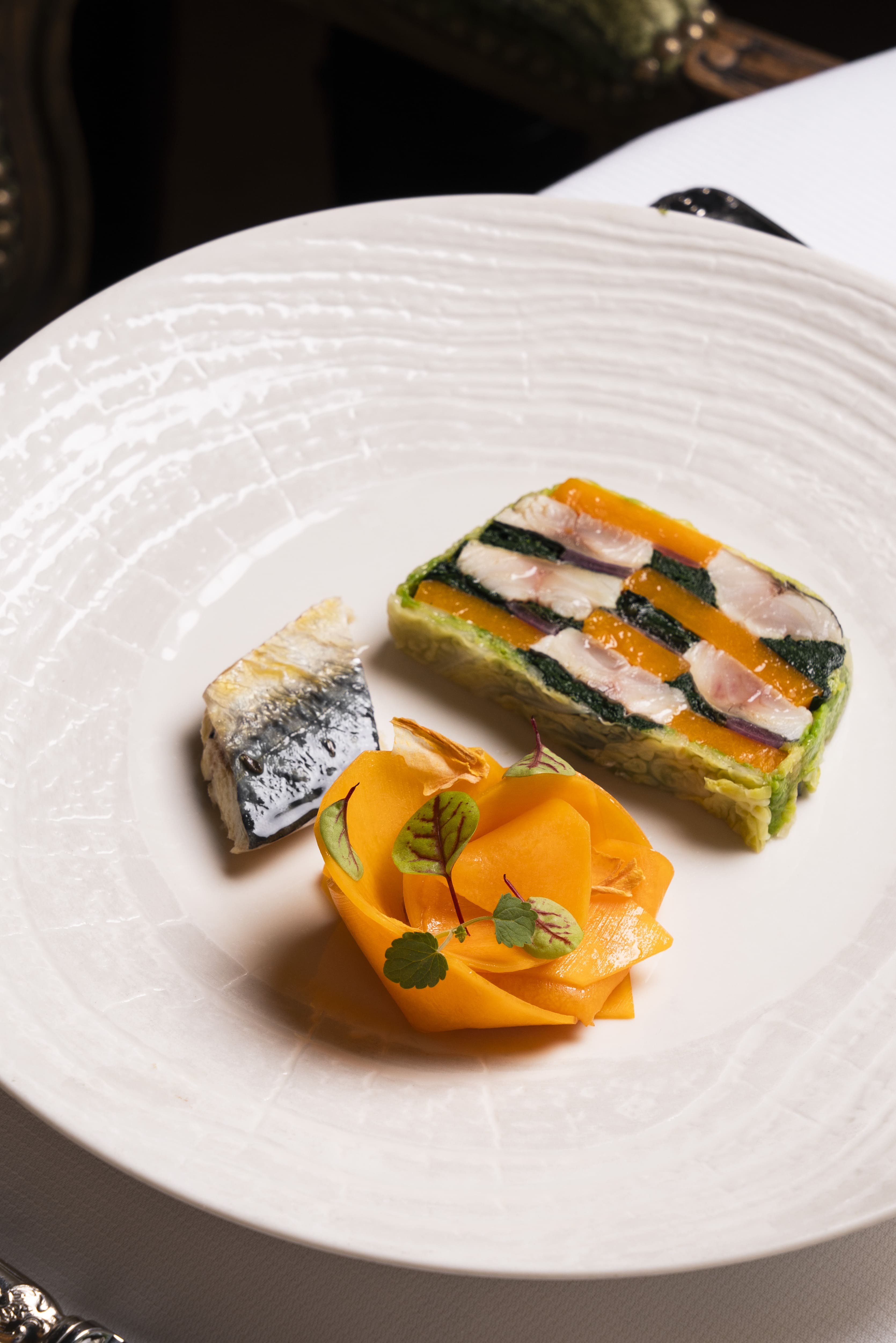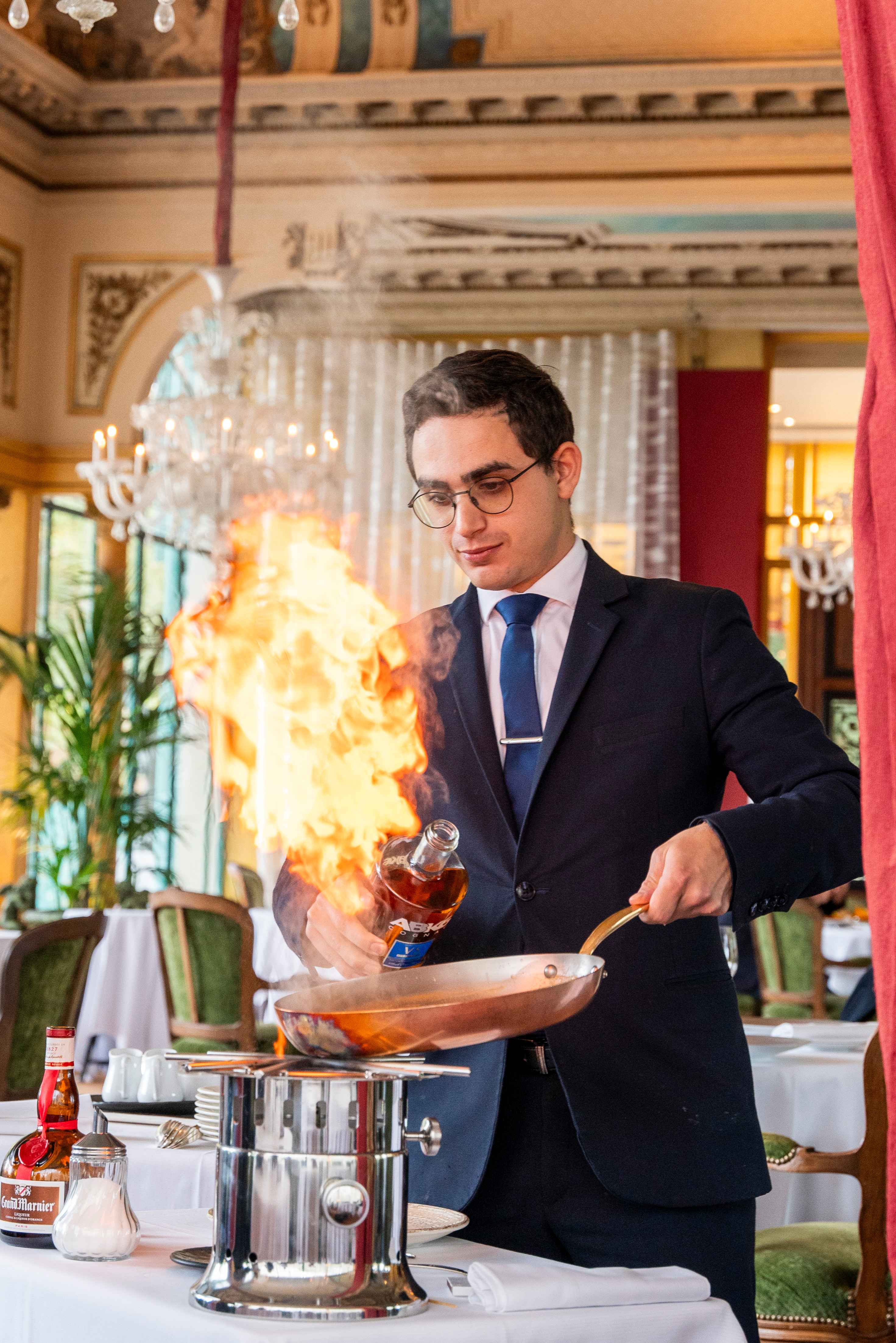 À seulement 26 ans, le pâtissier Joris Vee partage aussi avec Frédéric Robert cette philosophie créative nourrie par le classicisme. Elle permet aux hôtes du restaurant de redécouvrir le plaisir des Crêpes Suzette flambées en salle, ou encore du Baba parfumé au romarin, aux côtés d’un traditionnel Mille Feuille intensément vanille.